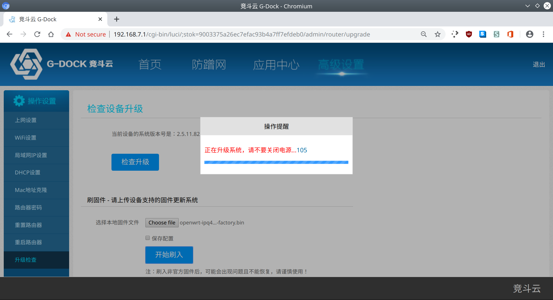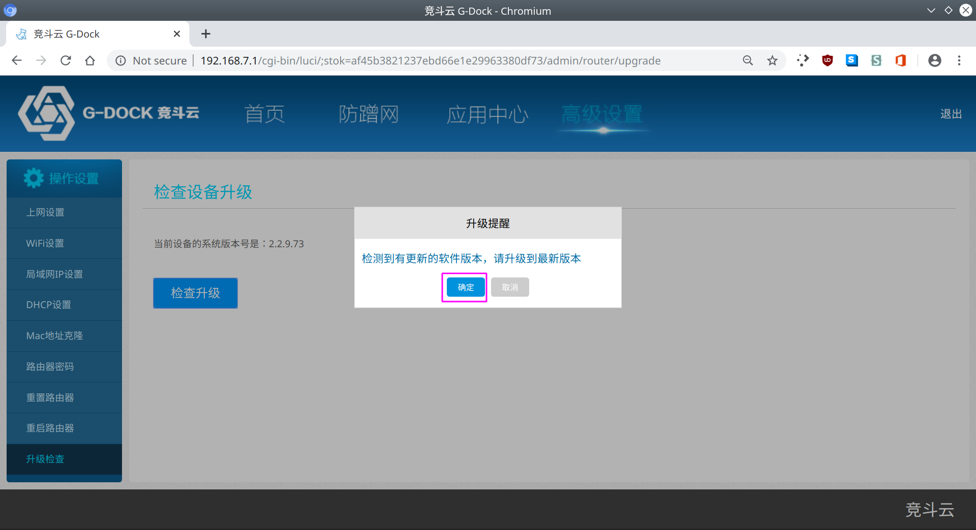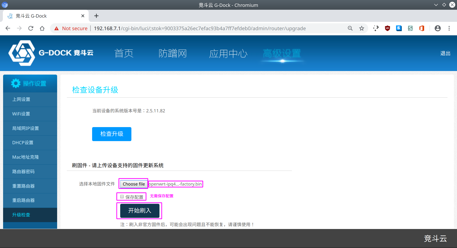 1.浏览器访问192.168.7.1进入官方固件的管理页面