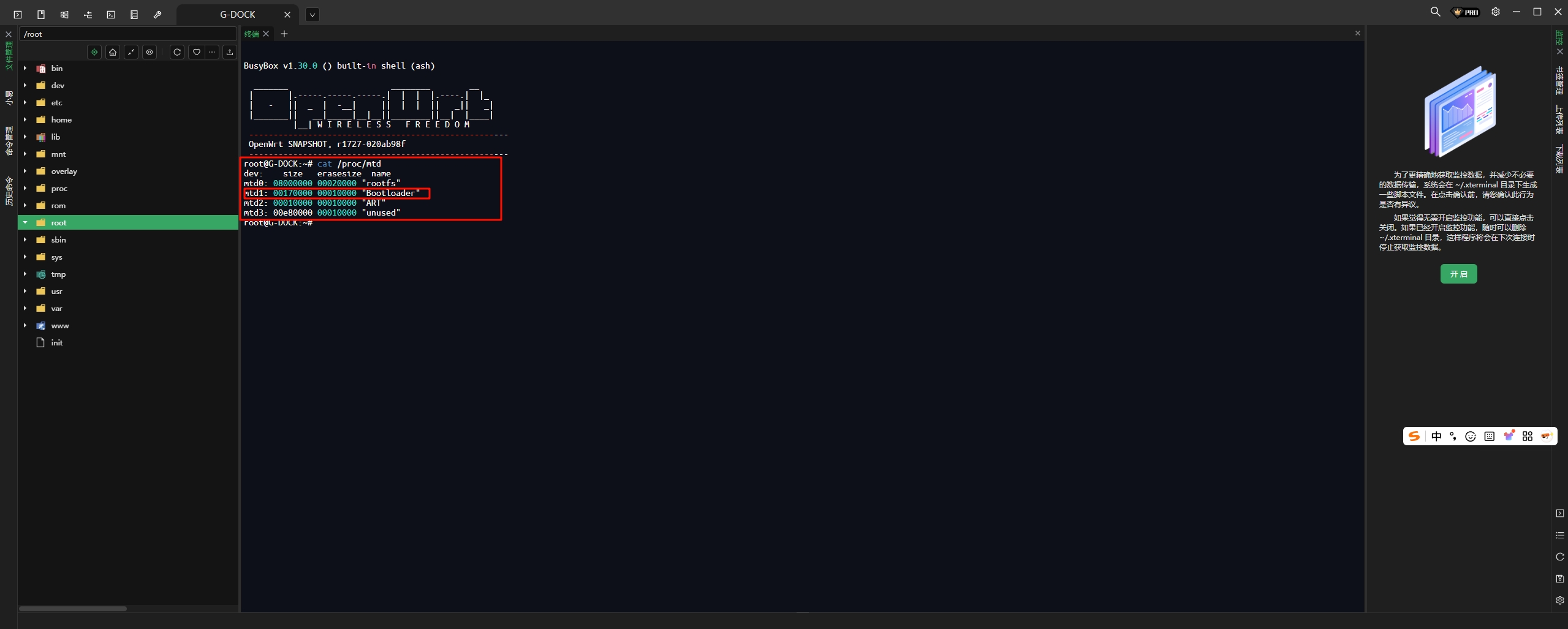 2.SSH登录到路由器,读取分区表并刷写Bootloader分区