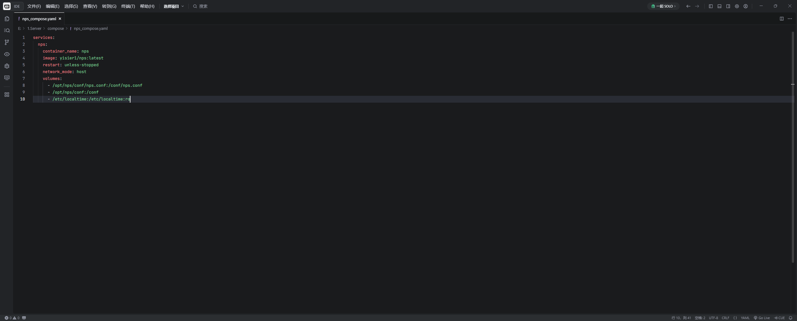 1.dcoker compose方式启动NPS容器的.yaml文件编写