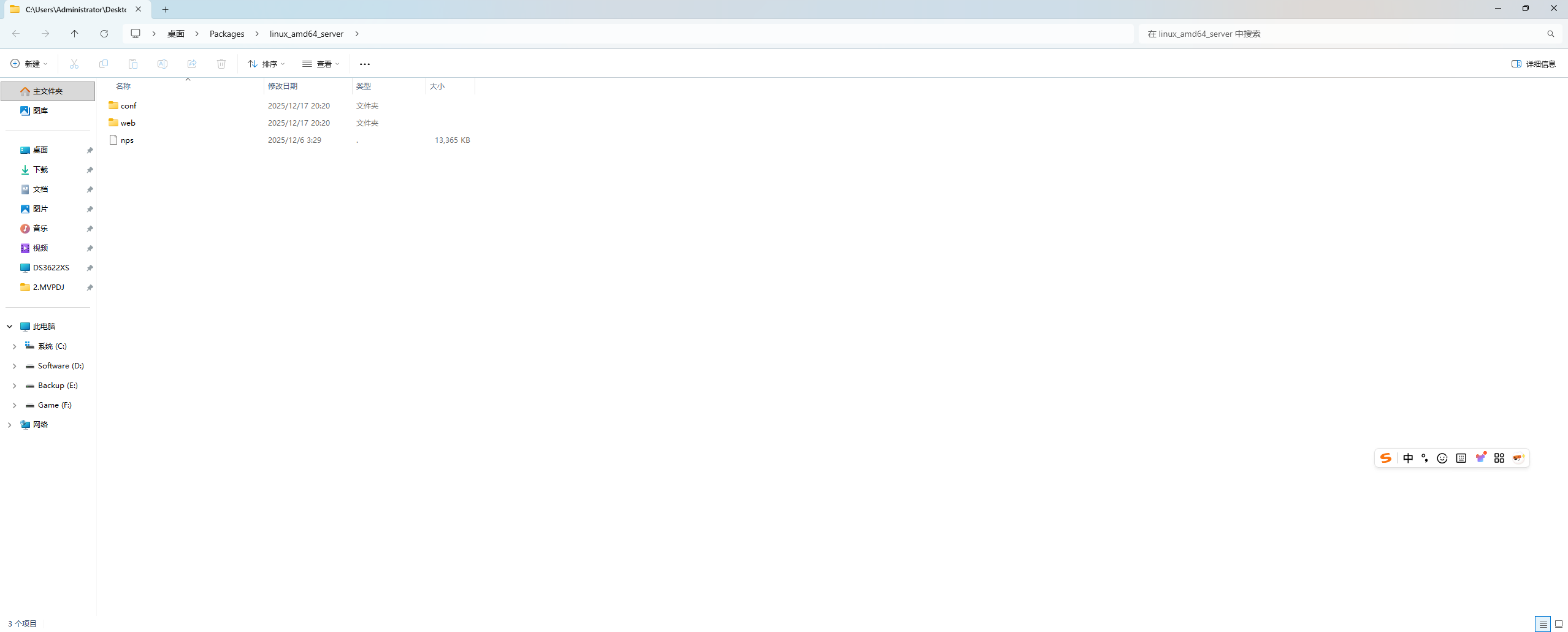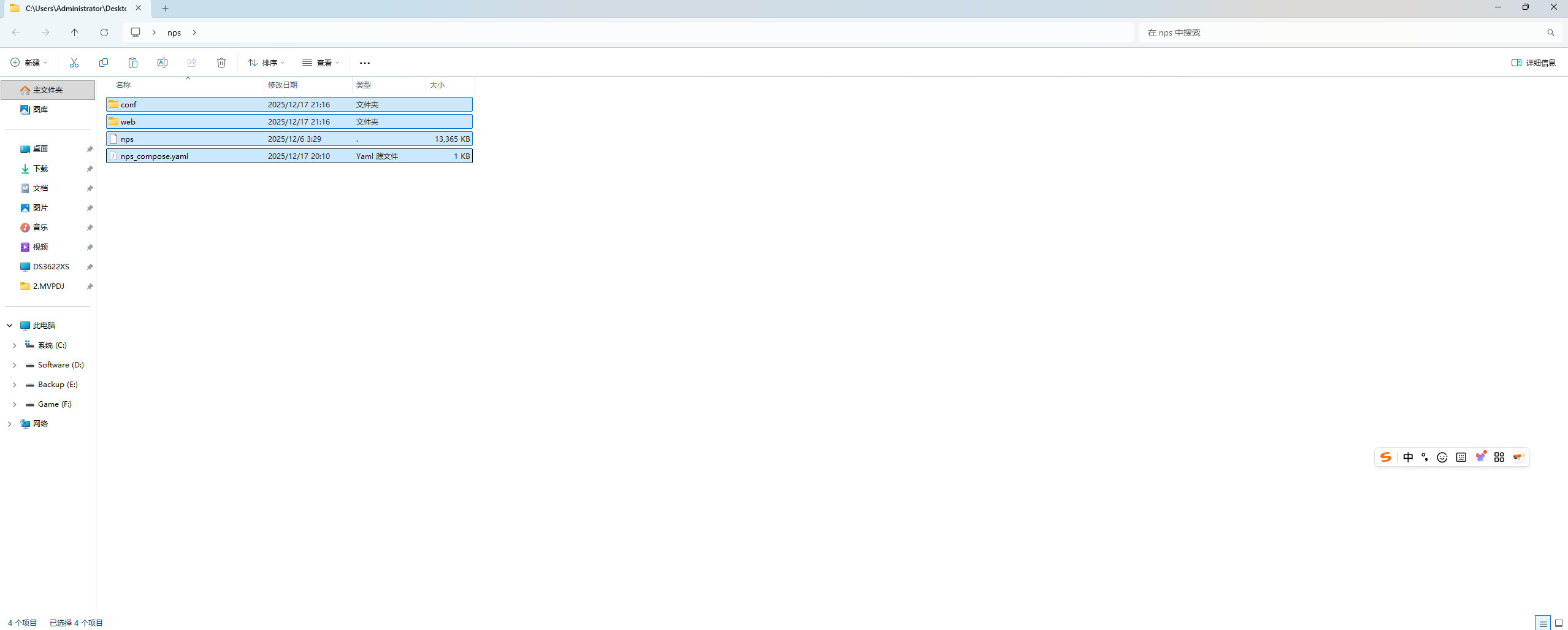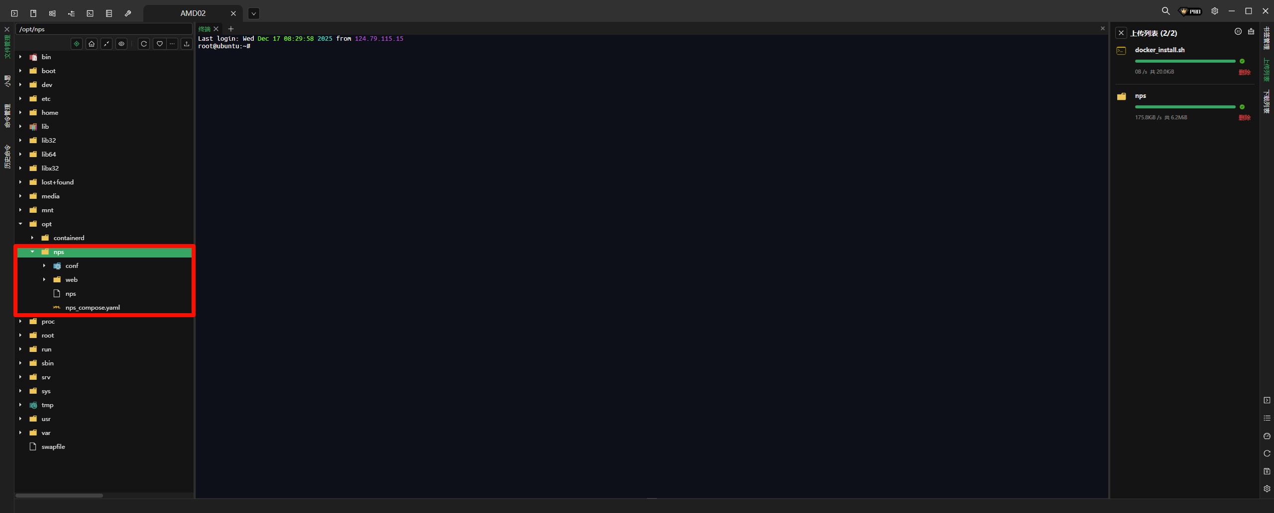 本地新建一个 nps文件夹,将即将上传的文件,全部拖入