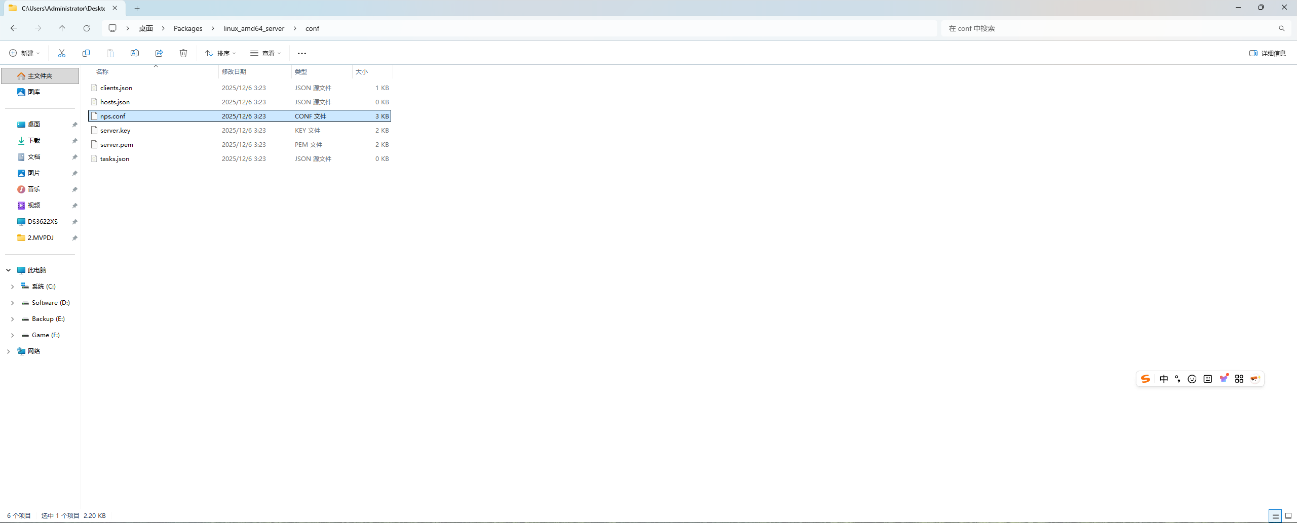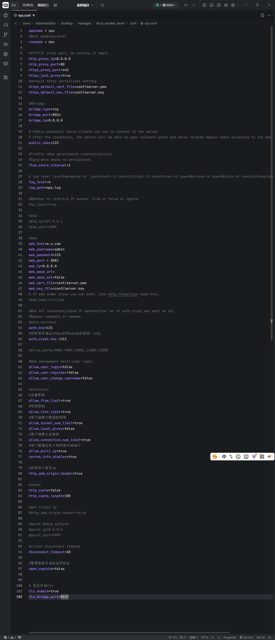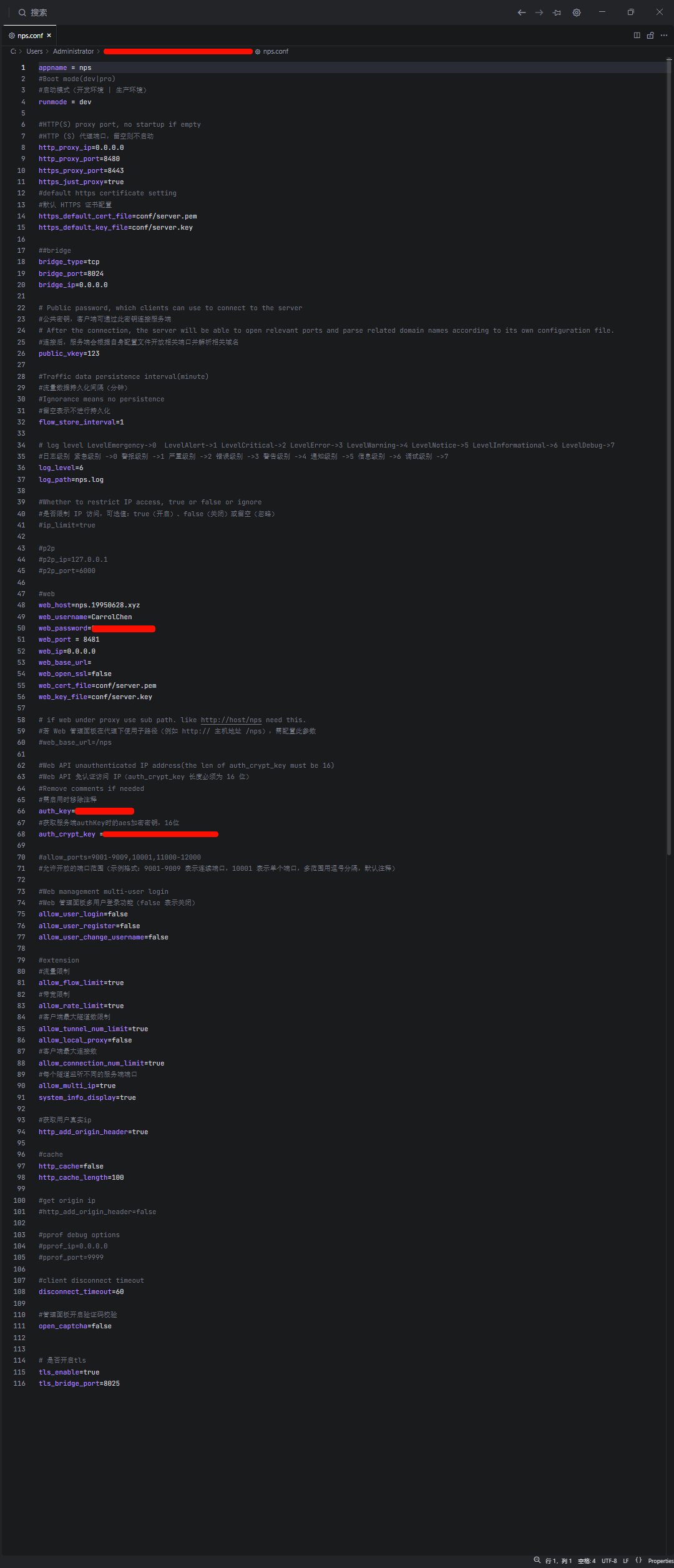 实际个人编写 nps.conf 文件如下,如需使用此配置,可下载