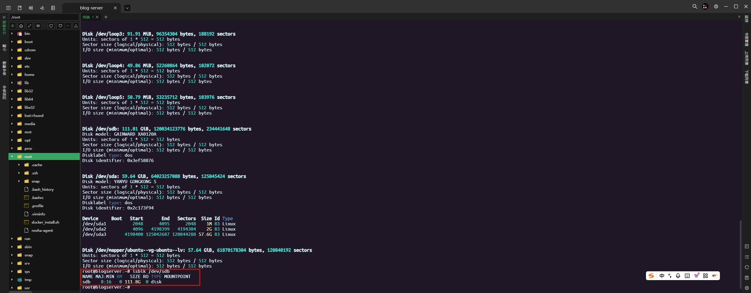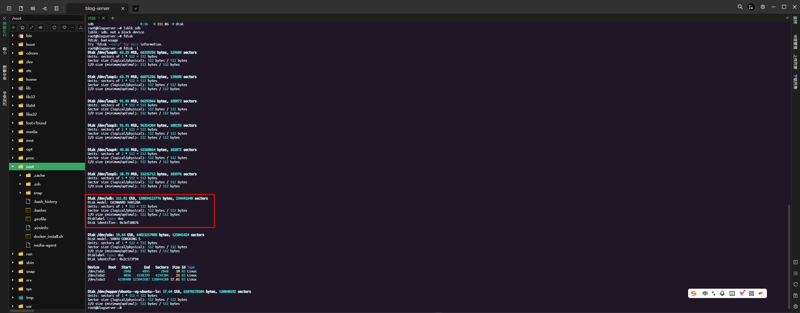 新磁盘位于:/dev/sdb