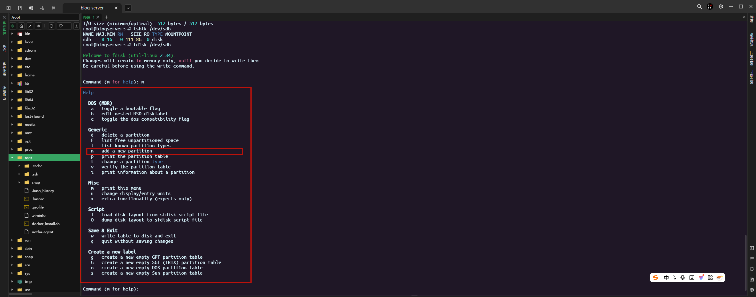 fdisk /dev/sdb