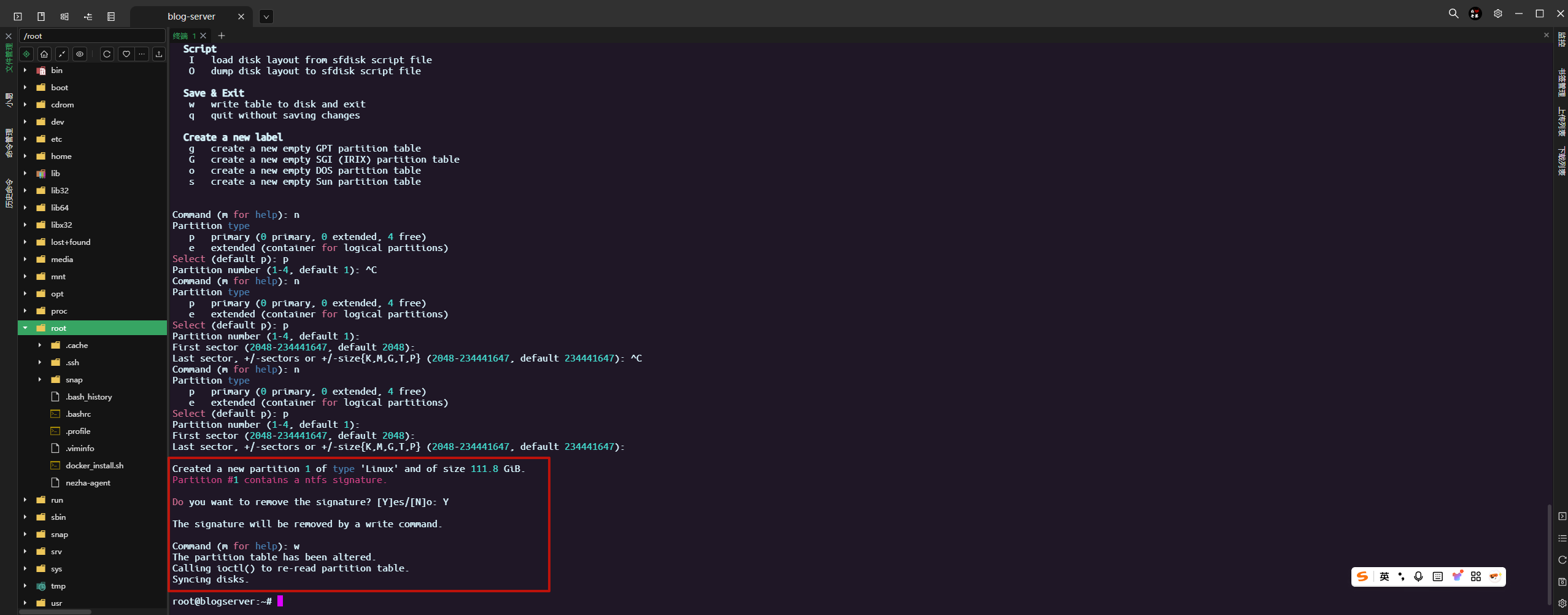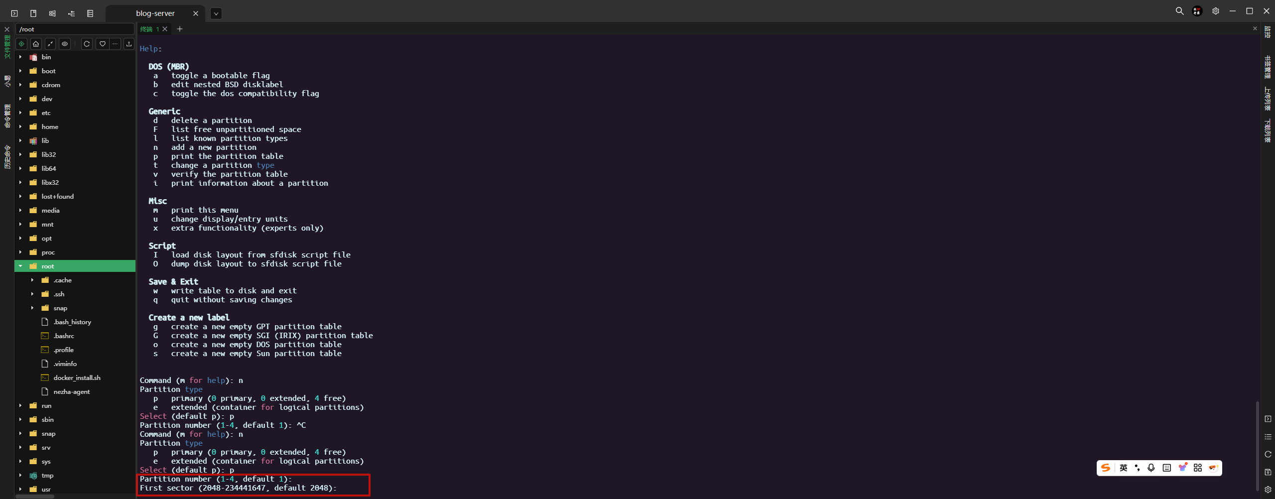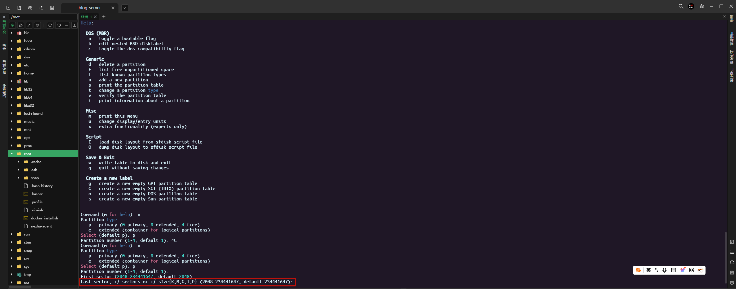 这一步是对结束扇区进行设置,一般使用整个磁盘空间,直接默认回车即可,也可以使用 +n(K,M,G,T,P)