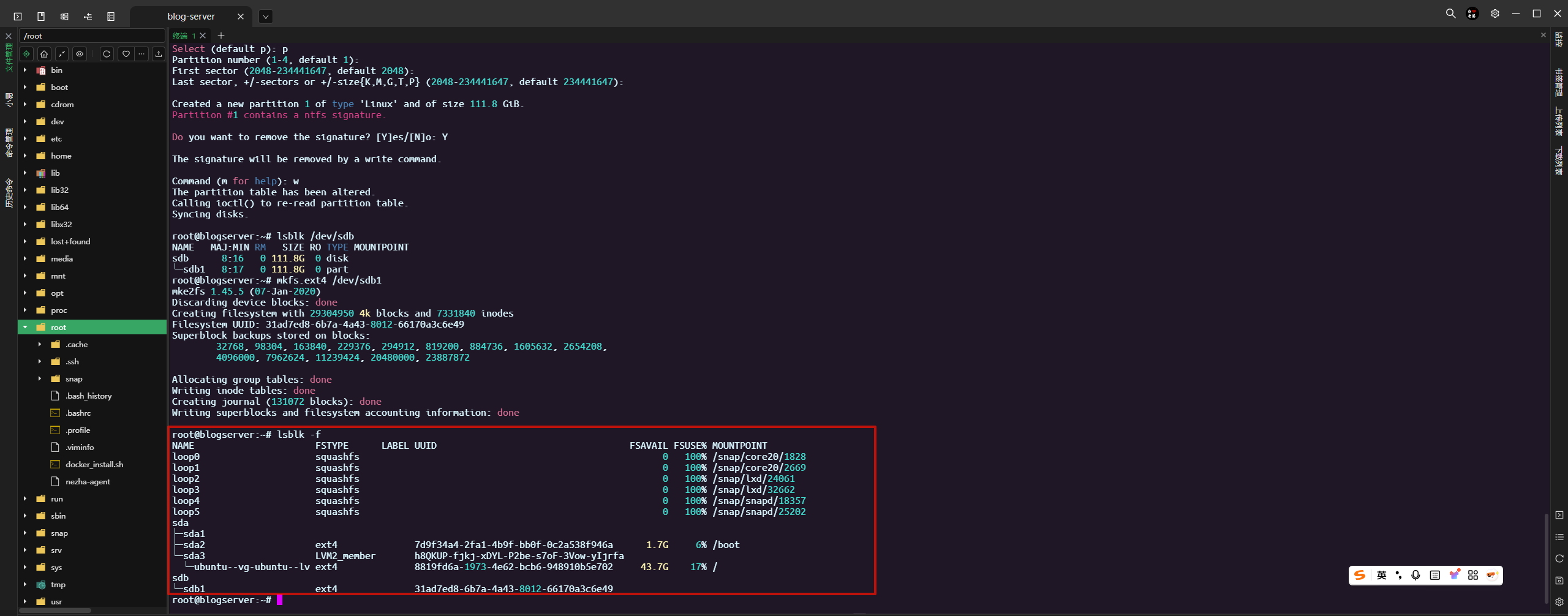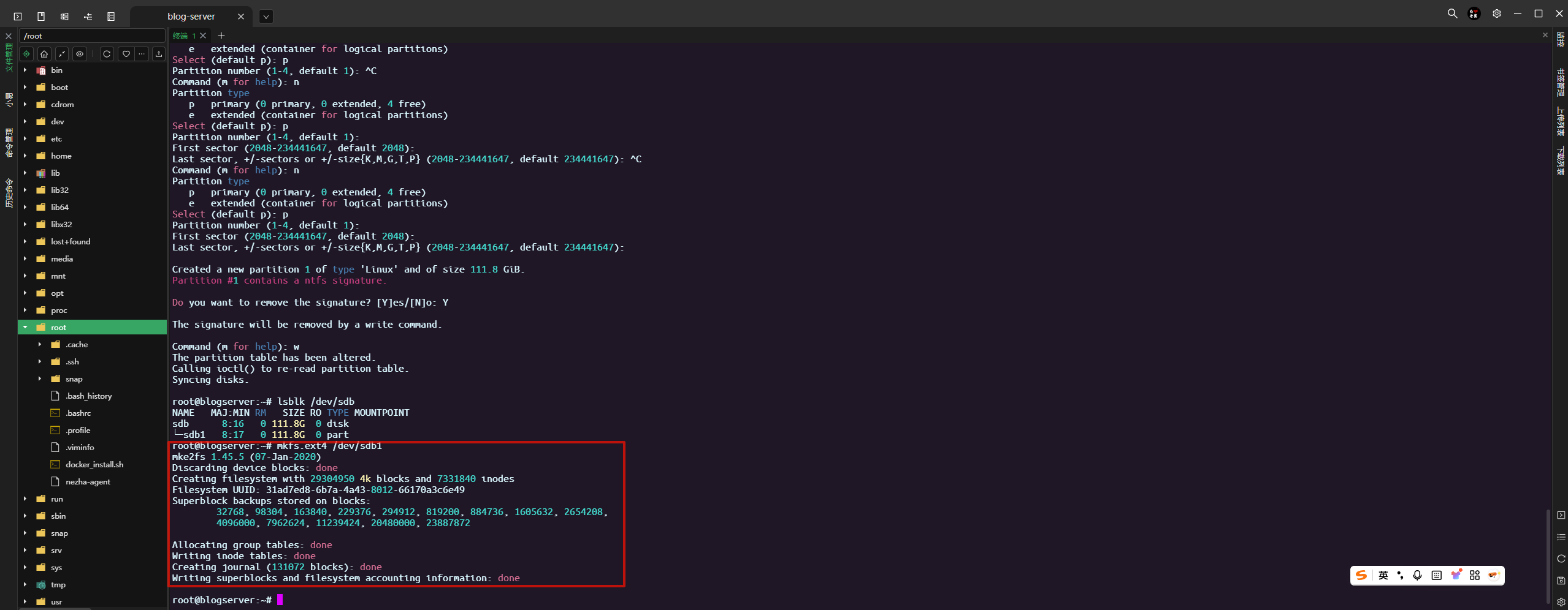 mkfs.ext4 /dev/sdb1