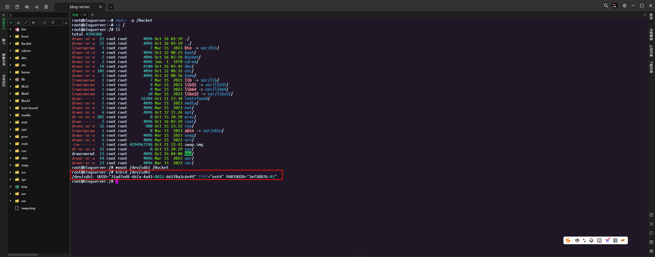mount /dev/sdb1 /Bucket