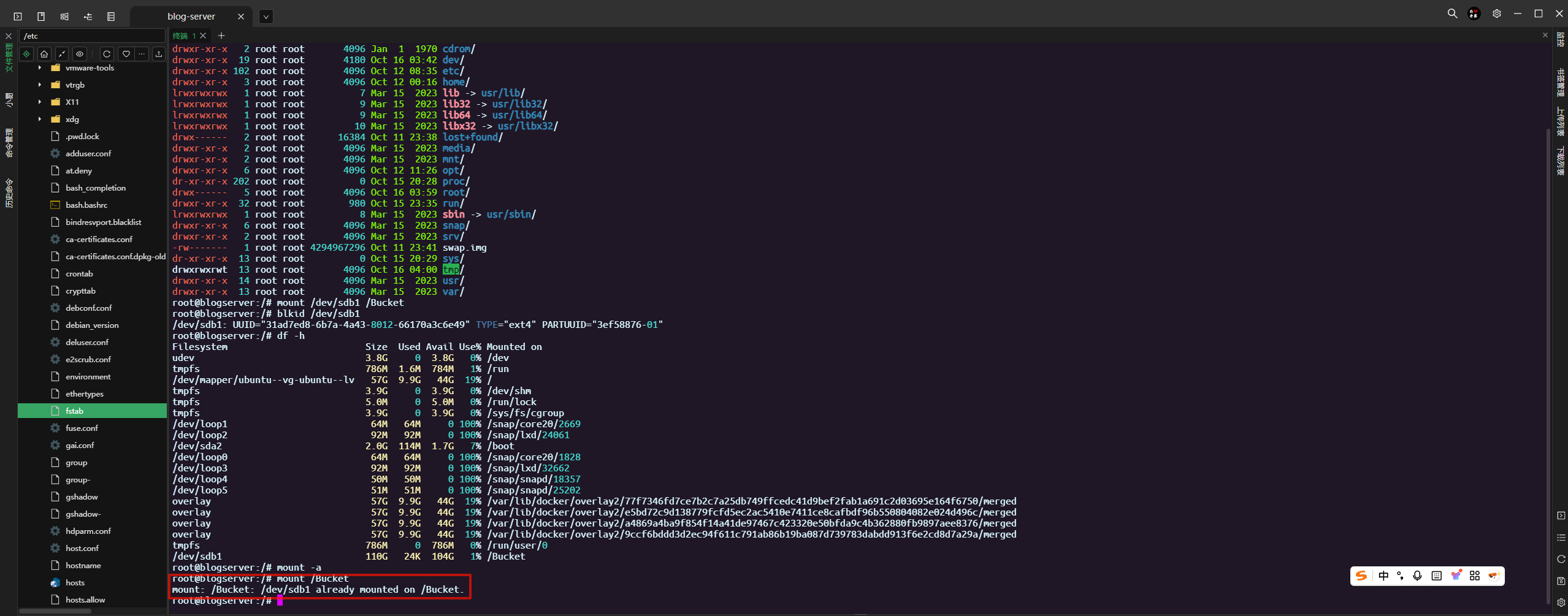 因为如果遇到服务器重启,上述挂载可能会失效,需要重新挂载,现进行永久挂载使用